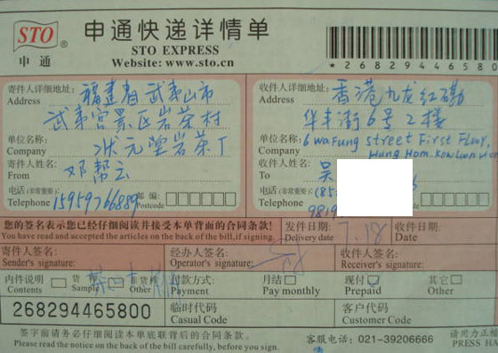 您的位置:  武夷山状元堂岩茶厂 -> 发货通知列表 -> 香港吴先生:茶品已发!