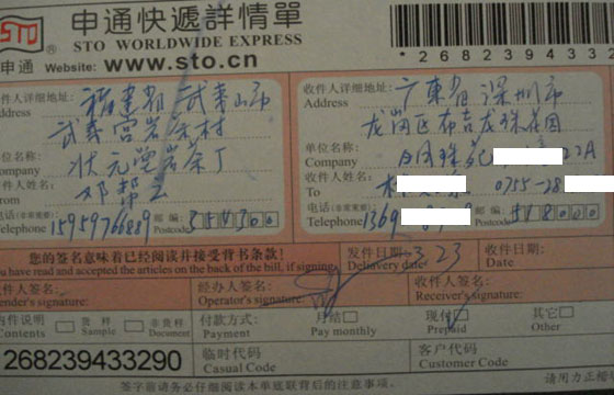 承运商:申通快递